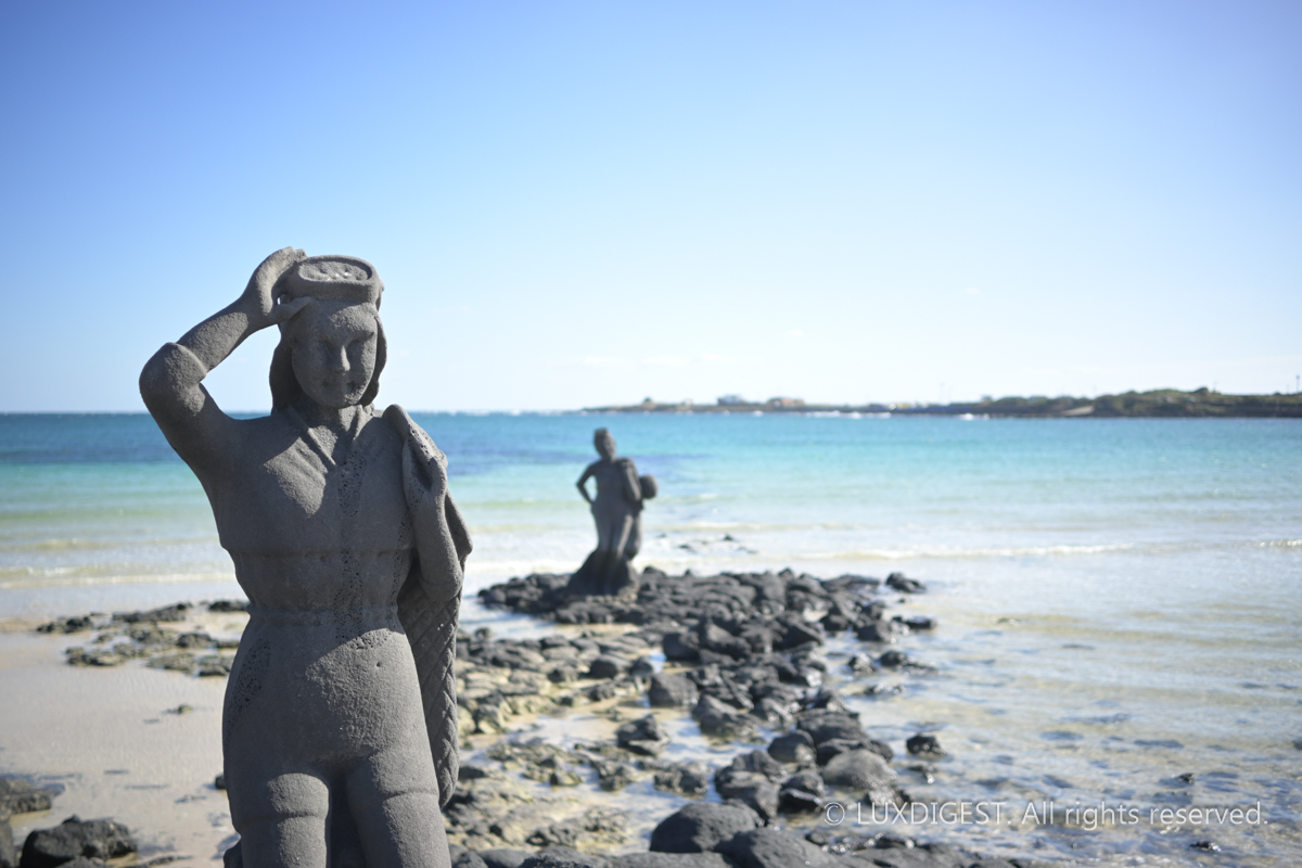 지금까지 돌아다닌 제주 해수욕장 마다 현무암으로 제작된 조각상들이 다 있었던 것 같습니다.
