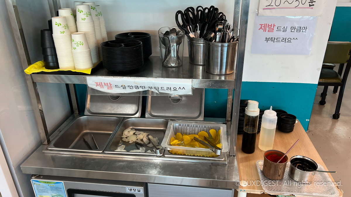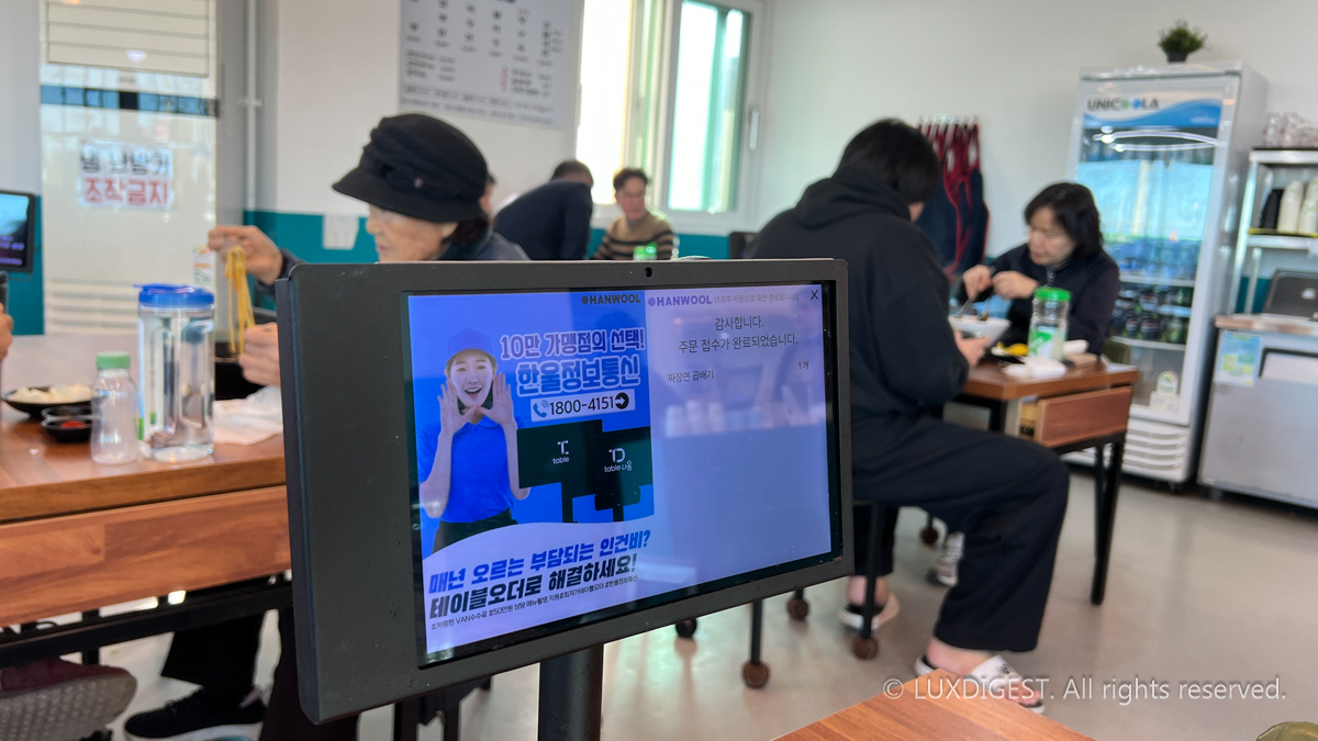 셀프로 반찬을 가져다 먹을 수도 있고 또 키오스크 주문형태로 테이블에서 편하게 주문할 수도 있습니다.