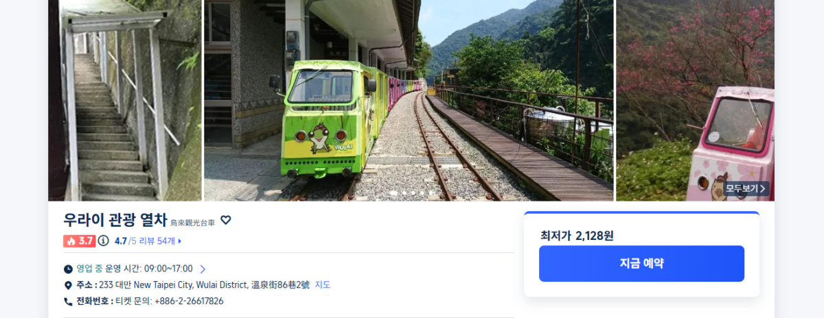 우라이꼬마기차는 대만 우라이 마을의 독특한 교통수단으로, 매력적인 경치를 감상하며 여행할 수 있는 기회를 제공합니다. 이 기차의 운영 시간은 계절에 따라 다소 변동이 있을 수 있으며, 일반적으로 오전 9시부터 오후 5시까지 운영됩니다. 주말이나 공휴일에는 추가 열차가 운행되므로, 방문 전에 공식 웹사이트를 통해 최신 정보를 확인하는 것이 좋습니다.