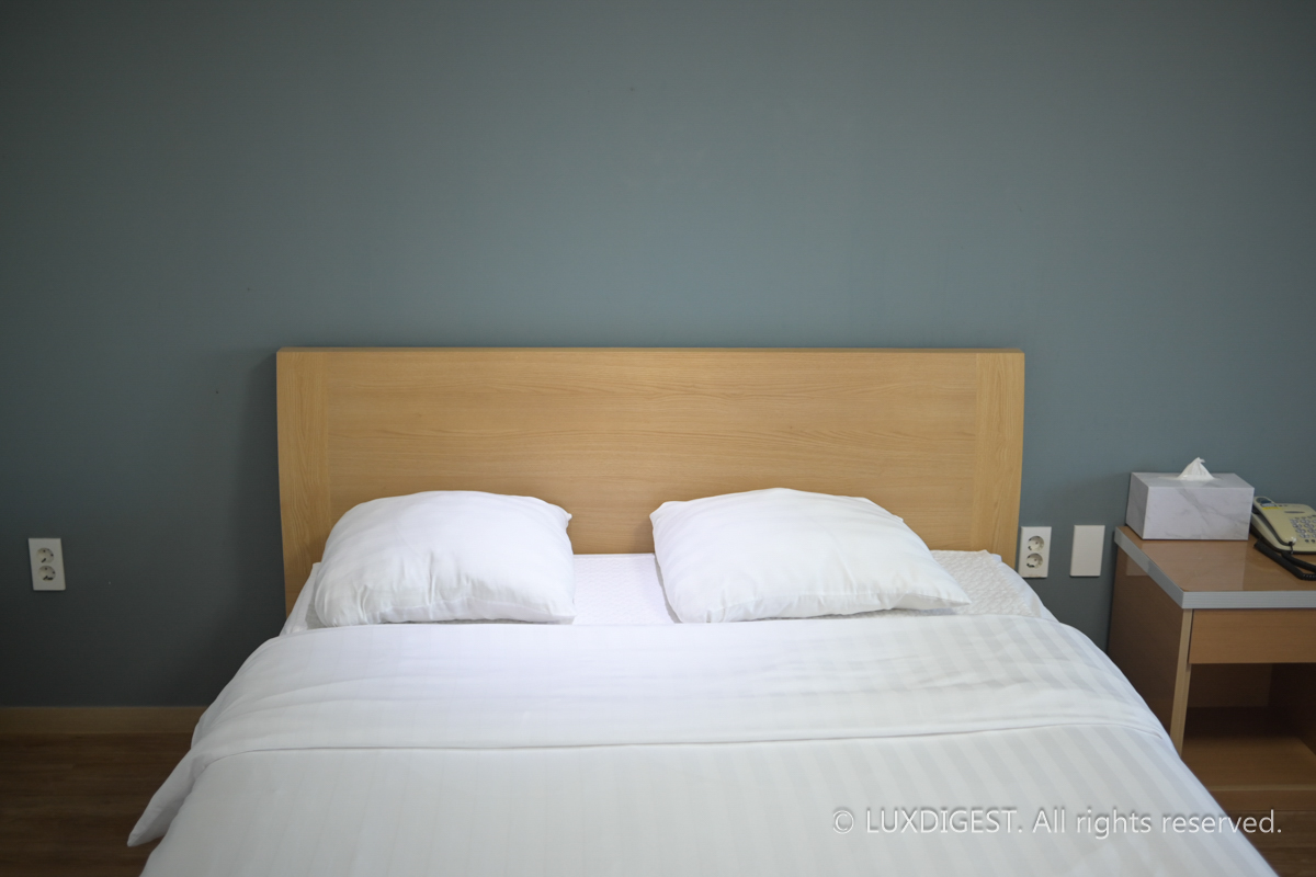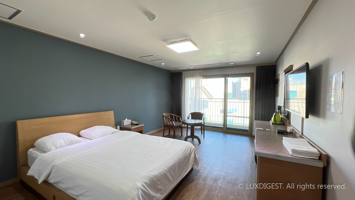 객실 크기가 아주 넓진 않음 침대+테이블이 들어가면 기본적인 공간 정도. 도심형 호텔 컨셉이라 ‘리조트급 넓은 방’을 기대하면 아쉬울 수 있음.