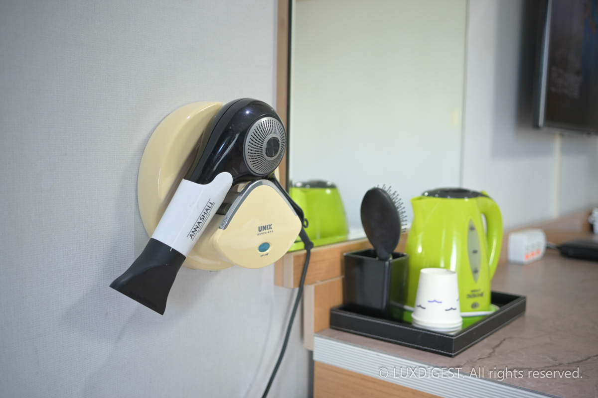 물은 2개 제공되고 드라이기나 기타 전기포트 등 일반적으로 필요한 용품들은 잘 비치되어 있답니다.