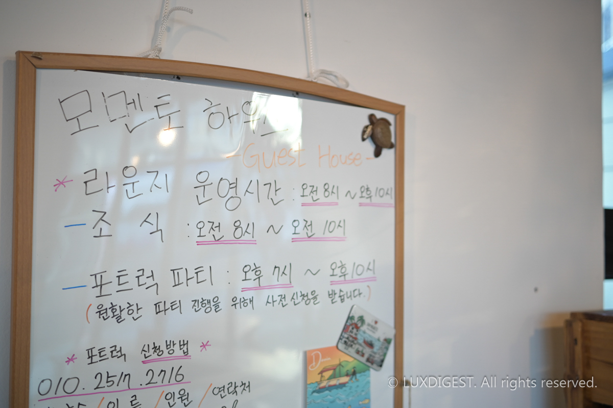 · 라운지 운영시간 08:00 ~ 22:00 (조식 08~10시 / 저녁 포트럭 파티 19~22시 운영되는 날 있음)