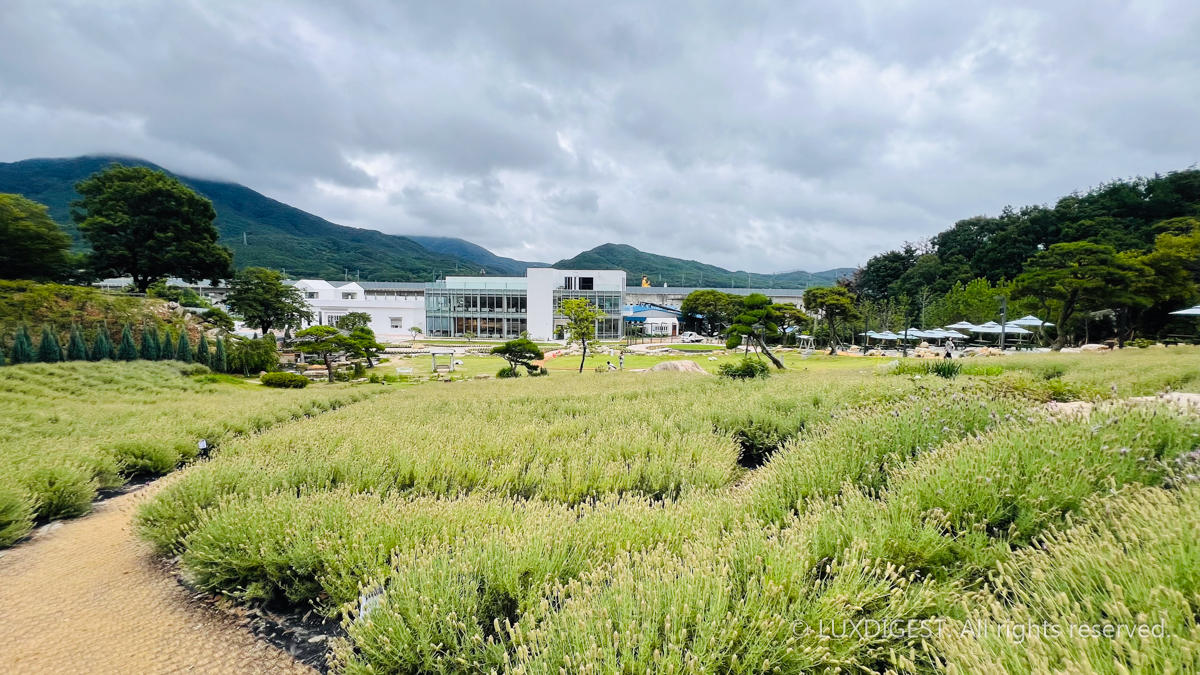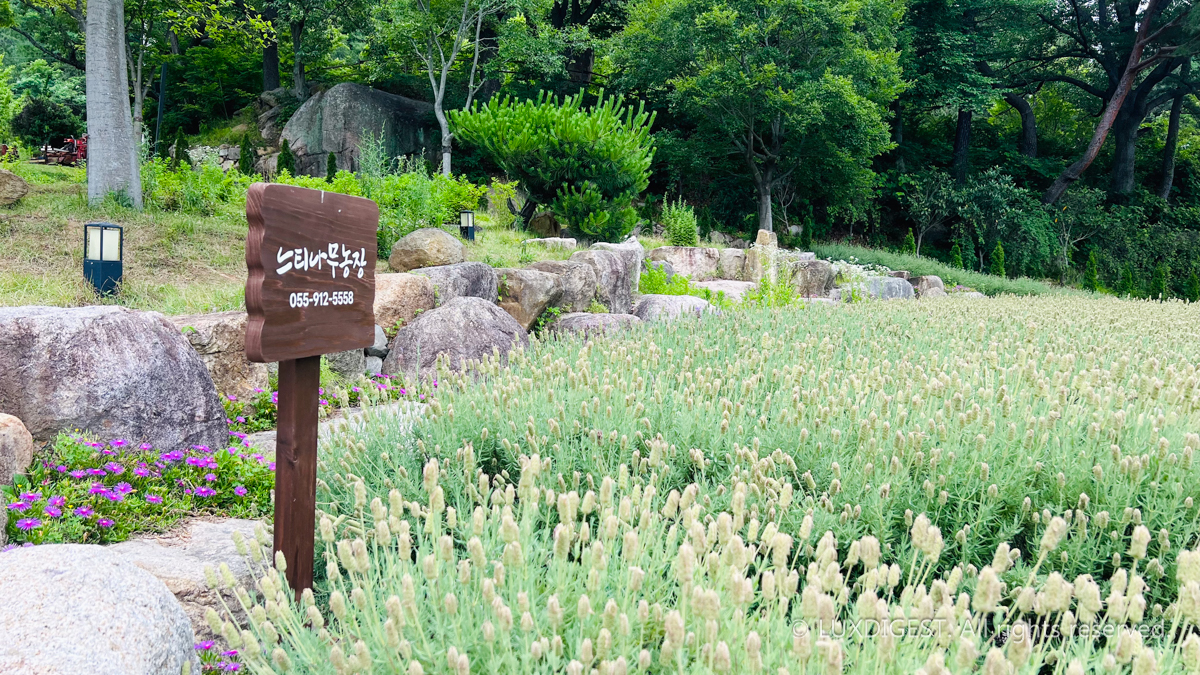 압도적인 규모의 정원: '느티나무의 사랑'의 가장 큰 매력은 사계절의 변화를 만끽할 수 있는 거대한 정원입니다. 잘 가꾸어진 잔디마당, 연못, 작은 폭포 등이 있으며, 특히 5월 말에는 보랏빛 라벤더가 만개하여 장관을 이룹니다.