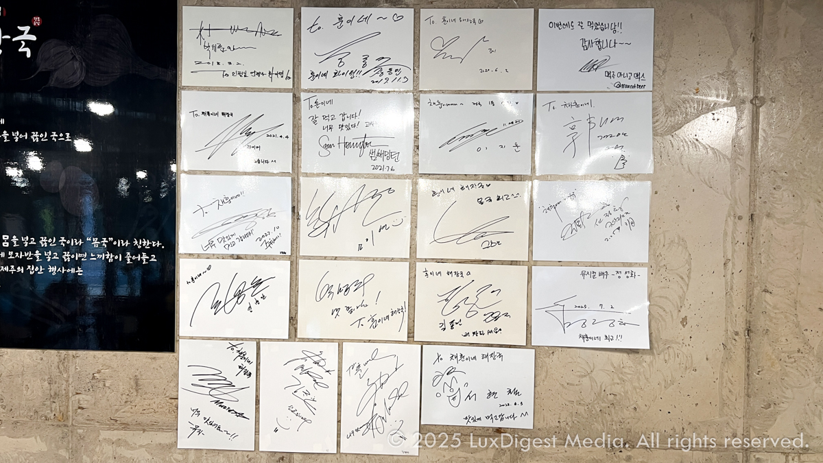 벽면을 보니 지난번 대문집과는 비교하기가 어렵지만 그래도 많은 유명인사께서 다녀가셨군요